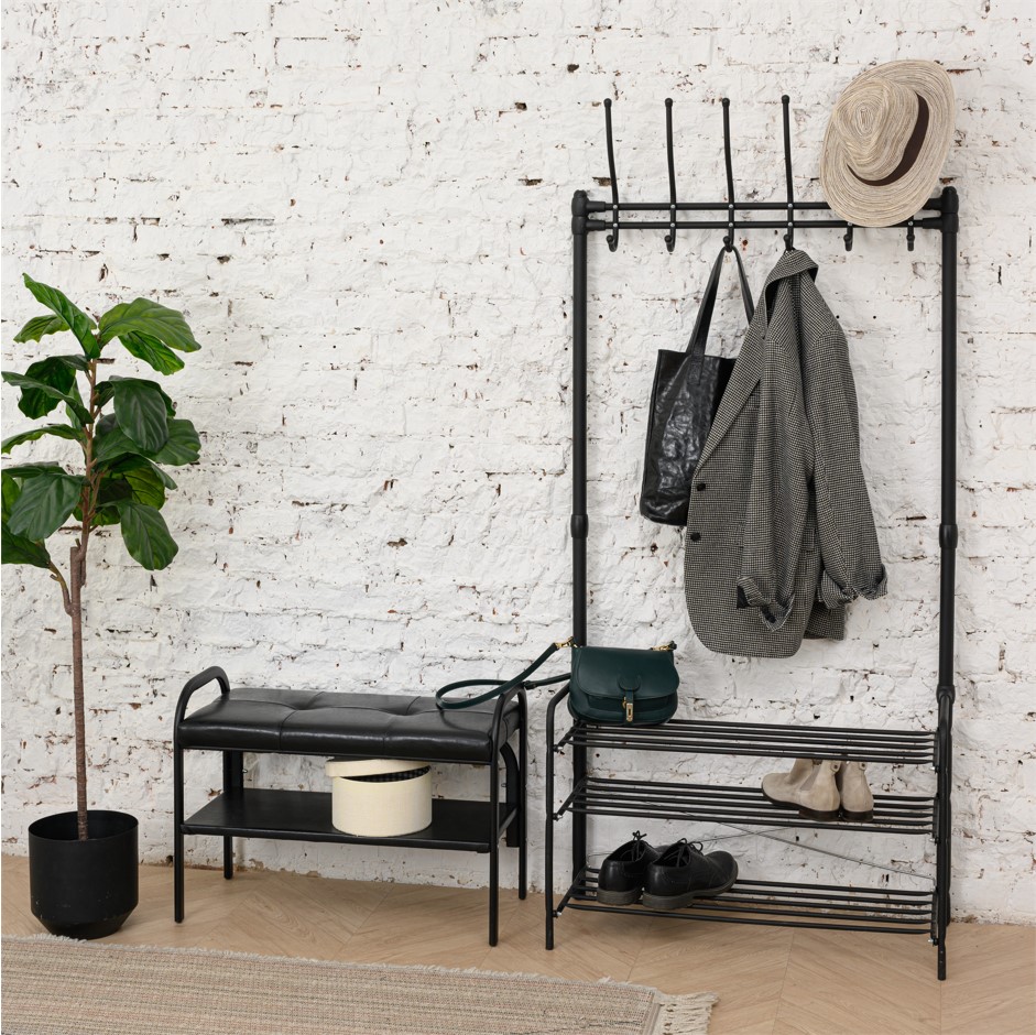Вешалка Nika ВПШ1/Ч матовый черный, напольная в прихожую, 82.5х33.5х189 см.
