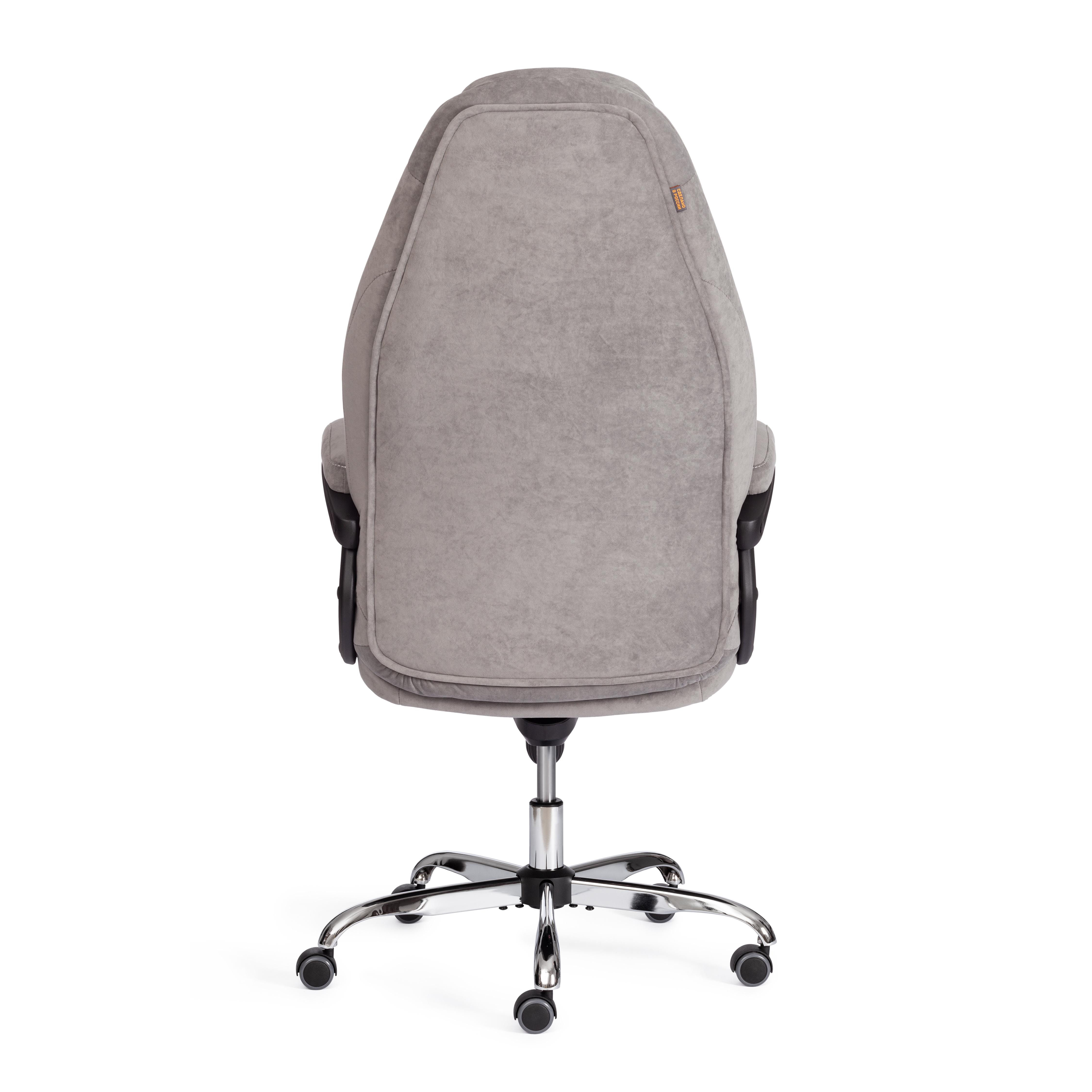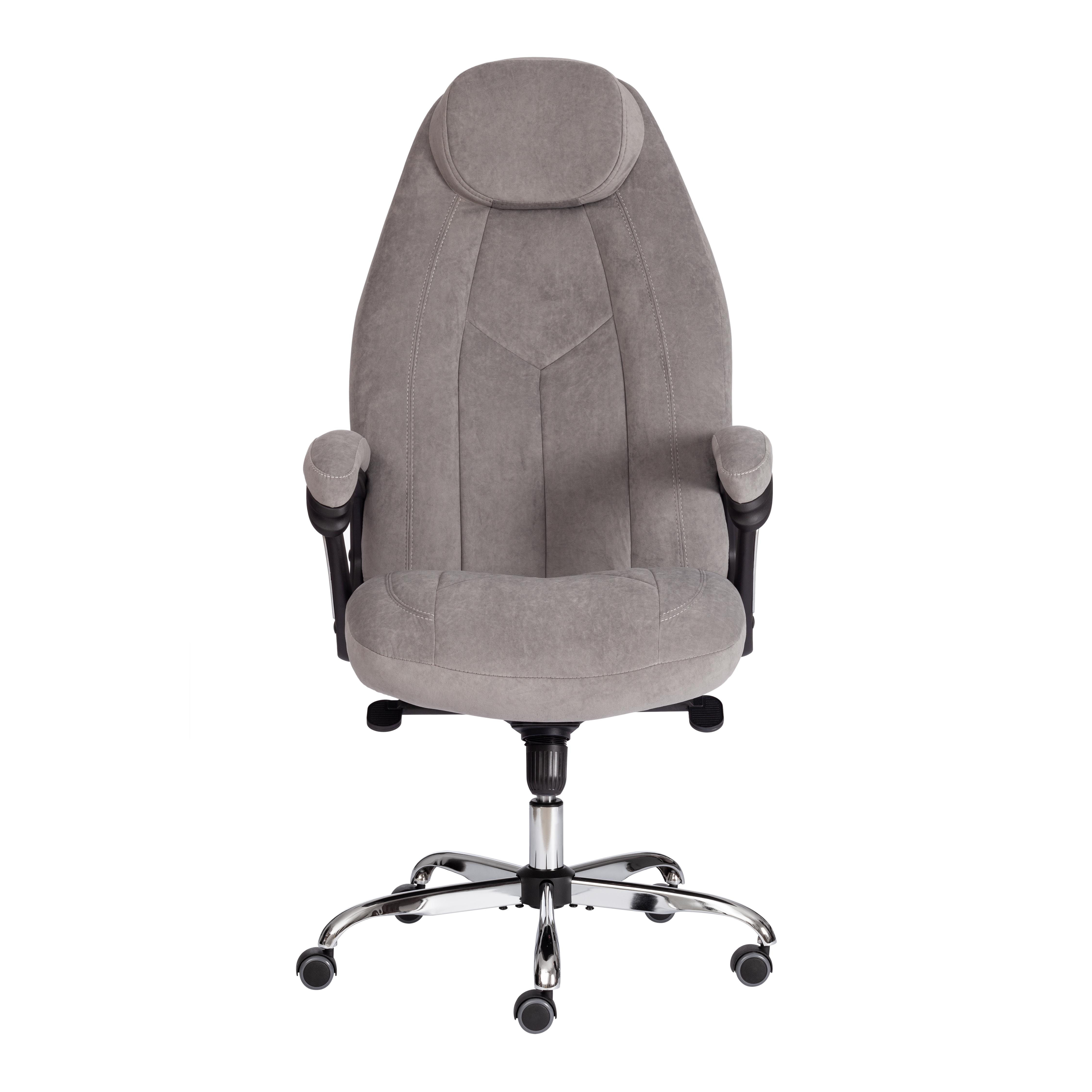 Кресло TetChair BOSS Lux флок, серый Код ткани: 29 Практичное и функциональное компьютерное кресло BOSS lux из коллекции OFFICE – необычный акцент в пространстве вашего дома или офиса. Модель прекрасно подойдет как для кабинета руководителя, так и для переговорной комнаты. Сиденье с мягким наполнителем из пенополиуретана стандартной плотности (до 35 кг/м2) уменьшит усталость при длительной работе. Каркас офисного кресла изготовлен из фанеры толщиной до 15 мм. Такой материал обладает отличными эксплуатационными качествами, прочностью и долговечностью. Кресло регулируется по высоте и наклону с фиксацией в нескольких положениях до 15 градусов. Жесткость механизма качания настраивается при помощи специального барабана. Металлическая хромированная крестовина надежна, основательна и устойчива. Ролики из полиуретана с прорезиненными вставками не шумят при перемещении, не оставляют следов на напольном покрытии. Ролики и крестовина в креслах бренда TETCHAIR соответствуют стандарту BIFMA. Во всех креслах бренда TETCHAIR используются газлифты 3 класса, он способен выдерживать вес до 120 кг. Удобный подголовник и фиксированные пластиковые подлокотники с мягкими накладками снизят нагрузку на шею и плечевой пояс. Оригинальное офисное кресло BOSS lux, обитое высокопрочной износостойкой экокожей или флоком, представлено в нескольких вариантах: коричневом, бежевом, черном, белом, сером, зеленом цветах. Экокожа , используемая при изготовлении кресла, выдерживает до 50 000 циклов на истирание по Мартиндейлу, мягкая ткань рогожка выдерживает до 40 000 циклов. Ткани с прочностью более 35 000 циклов являются самыми долговечными. Эргономичная модель подчеркнет безупречный вкус владельца, будет радовать своей долговечностью, презентабельностью и практичностью продолжительное время. Максимальная нагрузка 120 кг. Модель поставляется в разобранном виде. Требуется простая сборка по прилагаемой инструкции.