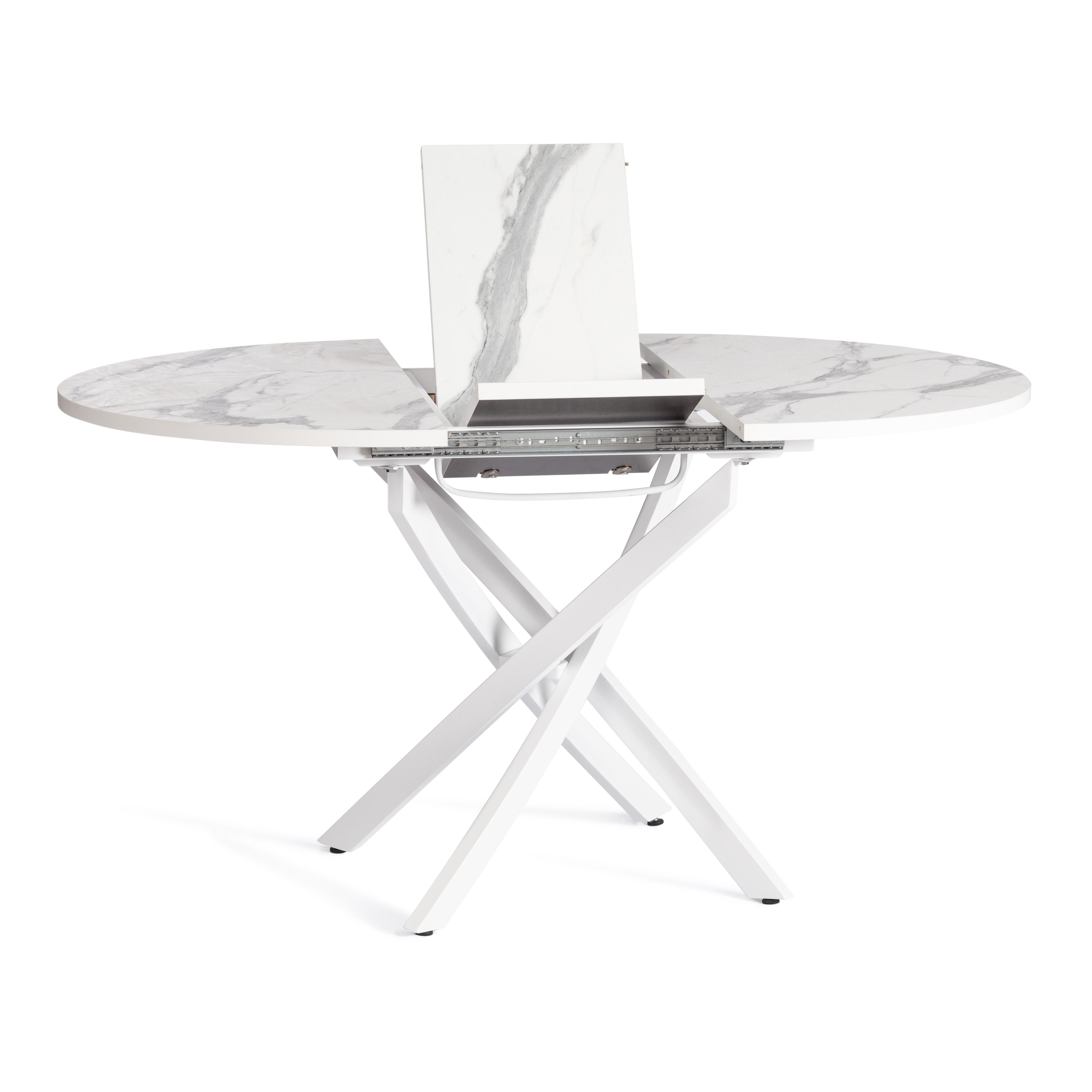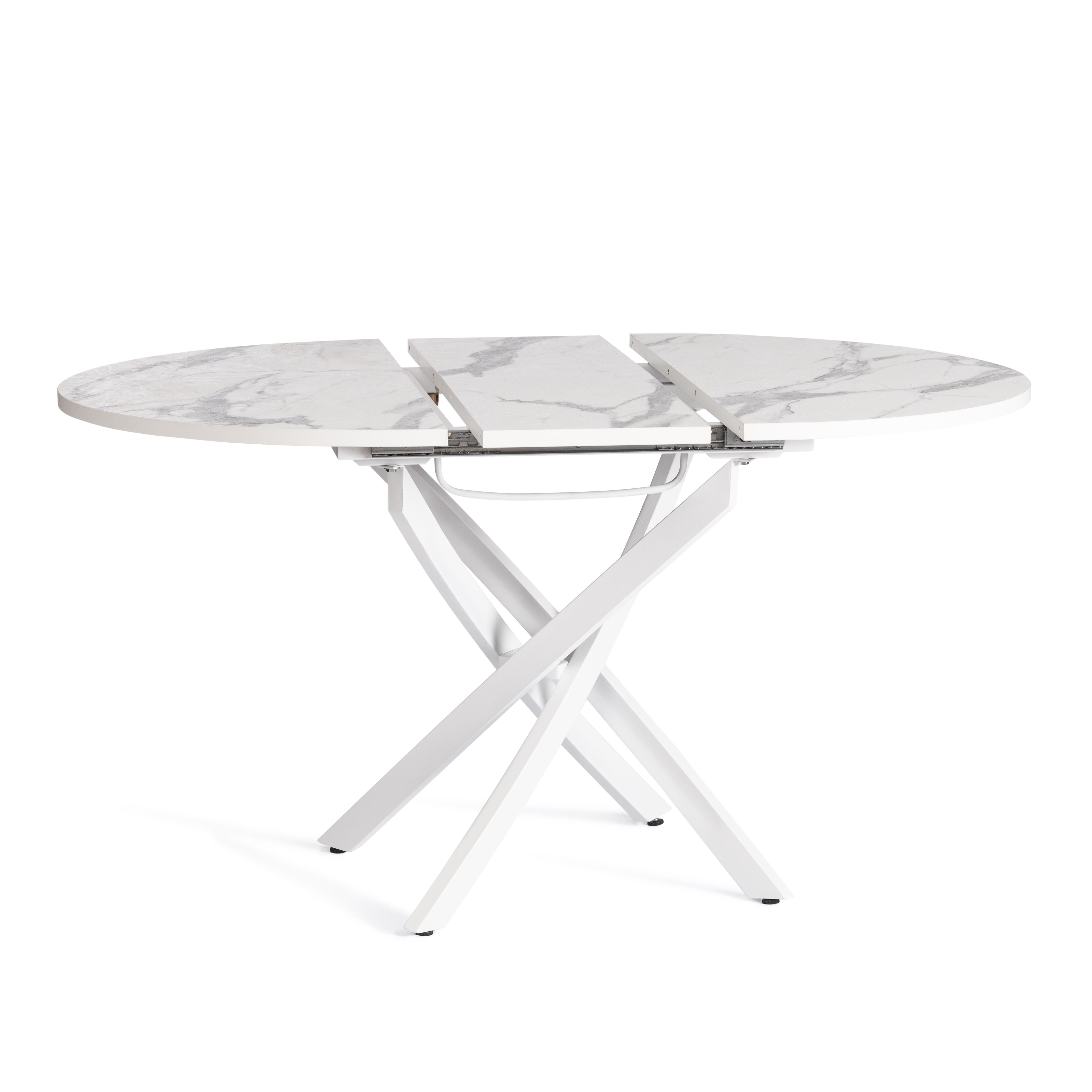 Стол TetChair MANZANA Мрамор светлый/чёрныйЛДСП/HPL/металл, 100 х 100+30 х 75 см, Мрамор светлый/чёрныйКруглый раскладной обеденный стол MANZANA из коллекции Modern отлично впишется в современный интерьер городской квартиры или загородного дома. Стол будет отлично смотреться в гостиной, кухне или столовой. Столешница цветатрамор светлый и вставка "бабочка" выполнены из ЛДСП толщиной 22 мм на лицевую поверхность которых нанесен защитный слой HPL толщиной 1 мм. HPL имеет защитное покрытие оверлей высокой степени истирания, которое повышает устойчивость поверхностей к повреждениям. Механизм раздвижения синхронный со вставкой "бабочка". Структурированная поверхность столлешницы с имитацией натурального камня придает изыканный вид. Кромка столешницы оклеена высокопрочной пленкой из ПВХ толщиной 2 мм. Стильные белые изогнутые металлические ножки окрашены порошковой краской. Устойчивые ножки стола регулируются по высоте для устранения неровности пола. За столом могут разместиться от 2 до 6 человек. Стол упакован в транспортировочный короб из ЛДСП + гофрокороб. Модель проста в сборке, инструкция прилагается. Всего упаковок: 1 единица товара в 1 упаковке Размеры упаковок, см: 106*110*18 - 1 шт. Объем, м3: 0.20405 Вес, кг: 35.00