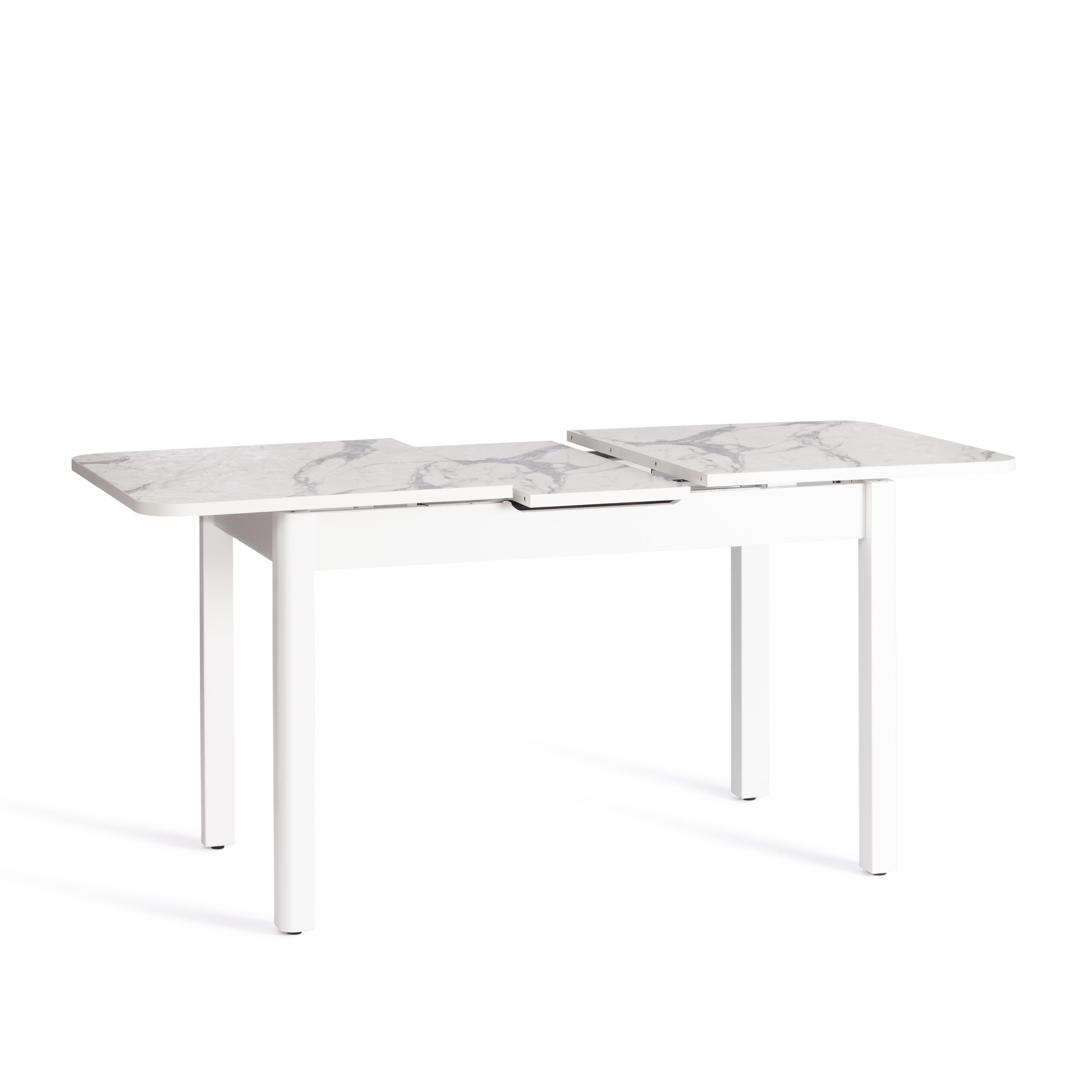 ЛДСП/HPL/опора-массив березы , 130 х 75+30 х 75 см, Мрамор светлый/белый