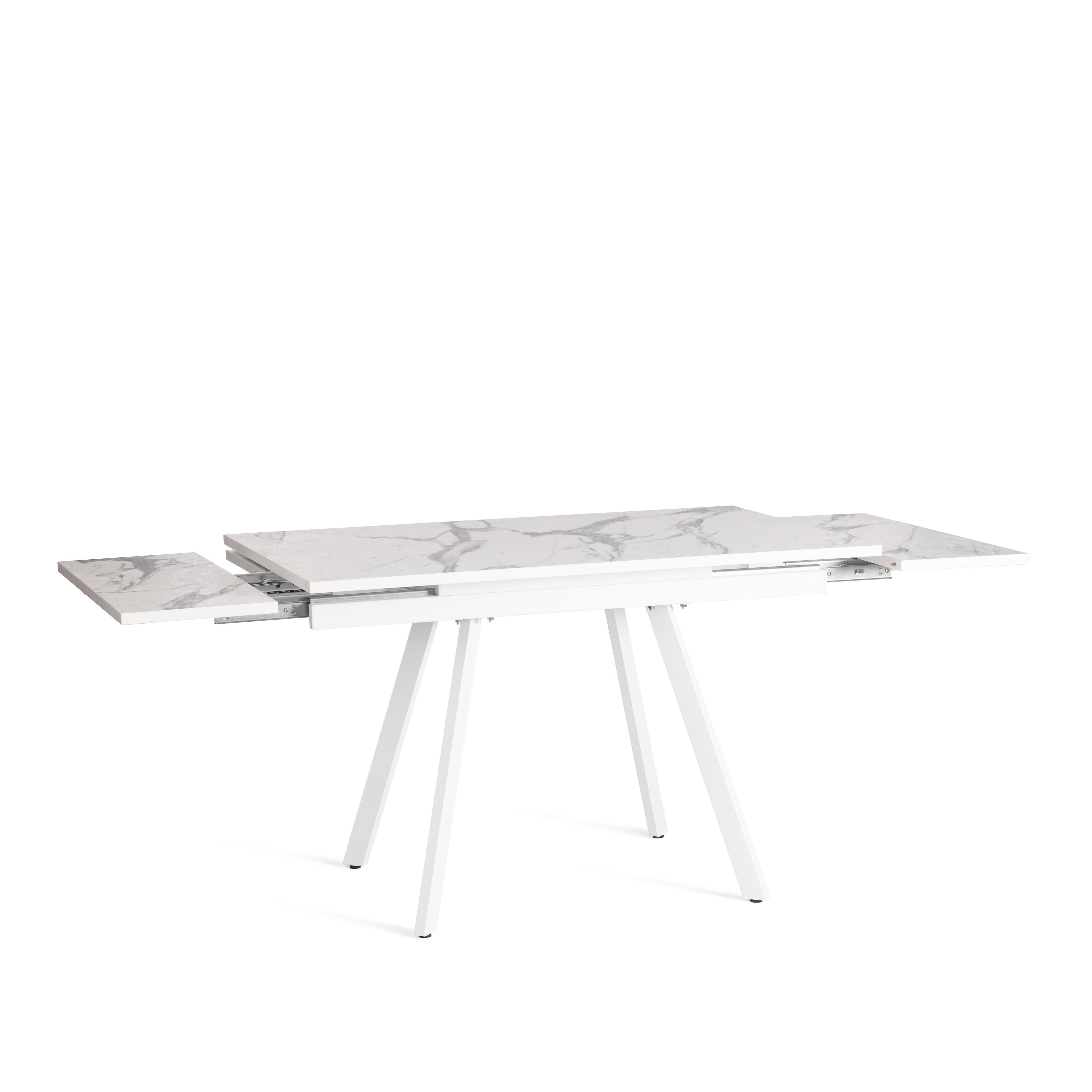 ЛДСП/HPL/металл, 120 x 80 x 30 х 30 х 75 смСтол VIGO из коллекции Modern украсит собой любую домашнюю обстановку Стол VIGO отлично подойдёт для гостиной, кухни, столовой или загородного дома. Столешница светлый мрамор и боковые выдвижные вставки выполнены из ЛДСП толщиной 22 мм на лицевую поверхность которых нанесен защитный слой HPL толщиной 1 мм. HPL имеет защитное покрытие оверлей высокой степени истирания, которое повышает устойчивость поверхностей к повреждениям. Структурированная поверхность столлешницы с имитацией натурального камня придает изыканный вид.Используется кромка ПВХ 2 мм. Для увеличения площади стола используется боковой механизм выдвижения с двумя вставками с обеих сторон. Прочные белые металлические ножки окрашены порошковой краской. Ножки стола регулируются по высоте для устранения неровности пола. За столом могут разместиться от 4 до 8 человек. Стол упакован в транспортировочный короб из ЛДСП + гофрокороб. Модель проста в сборке, инструкция по сборке прилагается. Всего упаковок: 1 единица товара в 1 упаковке Размеры упаковок, см: 86*126*16 - 1 шт. Объем, м3: 0.167958 Вес, кг: 49.50