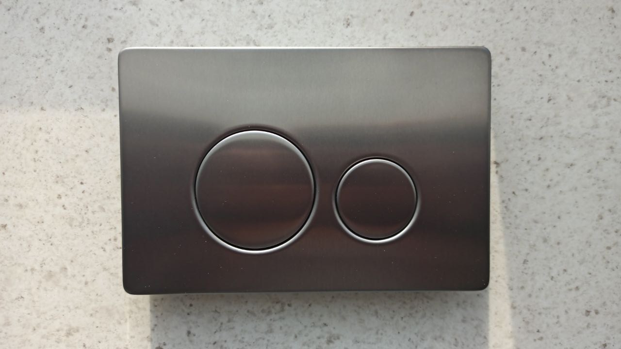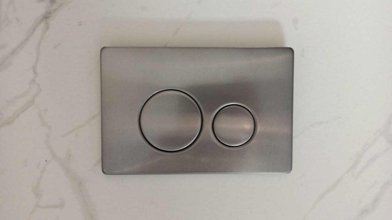 Клавиша смыва: 808SS-MG, серый матовый (matte grey) — глубокий, тёплый или холодный оттенок (в зависимости от освещения), не бликует, не собирает отпечатки, выглядит дорого и уместно
