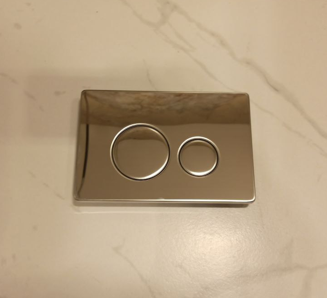 3. Клавиша смыва 808SS-CH (Глянцевый хром)Зеркальный акцент, завершающий образ. Премиальный вид: Глянцевый хром выглядит ярко и презентабельно, подчеркивая новизну вашего ремонта. Интуитивное управление: Две круглые кнопки с четким тактильным откликом для экономного и полного смыва.