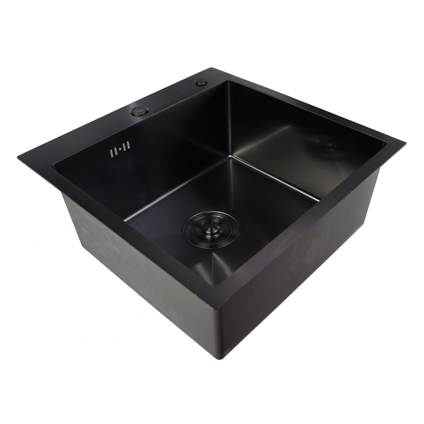 Мойка из нержавеющей стали премиум класса Santegro STR5050BL — квадратная, 50×50 см, с сифоном, цвет графит
