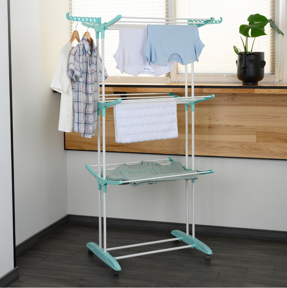 Вертикальная складная напольная сушилка для белья, продуманная конструкция для максимально комфортного просушивания белья.