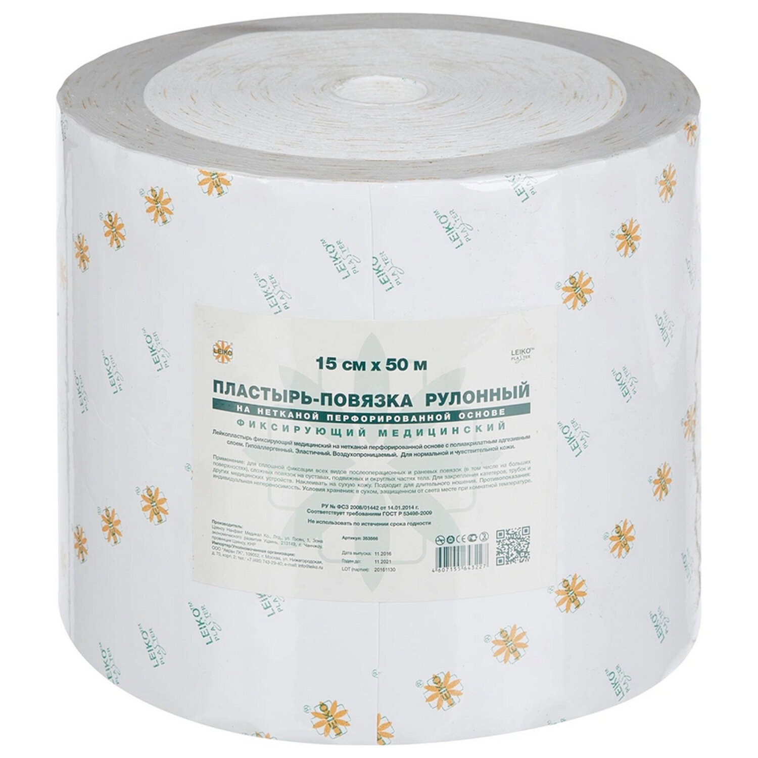 Тип товара: пластырь-повязка. Количество в комплекте: 1 шт.. Цвет: белый. Материал основы: нетканый. Размер: 15х5000 см. Тип упаковки: индивидуальная. Серия: пластырь-повязка Бренд - LEIKO. Производитель - Китай. Артикул производителя - 132856. Штрихкод - 4607155643227