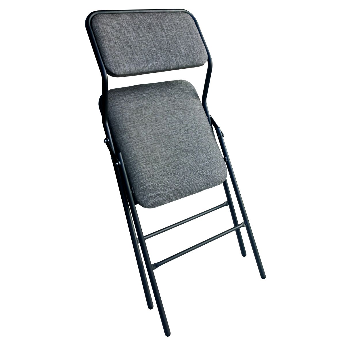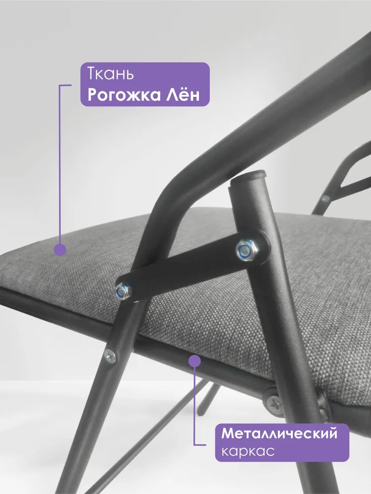 Стул складной LAKSI черный матовый, лен серый, металлический каркас