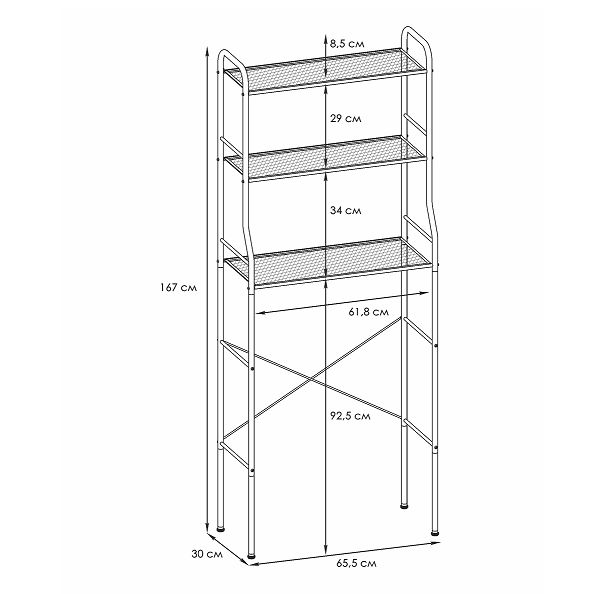 Стеллаж изготовлен из металла с порошково-полимерным покрытием, что обеспечивает его долговечность и устойчивость к коррозии. Пластиковые элементы добавляют эстетическую привлекательность и облегчают уход за изделием.